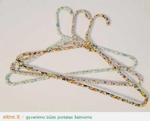 Tokia spalvinga idėja iš tinklapio pienthesky.blogspot.com šaltam savaitgaliui. Prireiks audinio, žirklių, paprastų, plastikinių pakabų ir dvipusės lipnios juostelės arba karštų klijų. Idėja visiškai paprastutė – sukarpome…